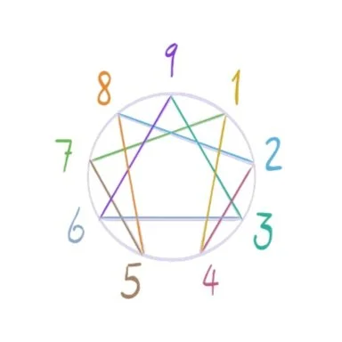 Each Enneagram Type is connected by a line to two other types on the Enneagram Web. One line represents a Growth Direction, the other represents a Stress Direction. Our Growth and Stress types compensate for our Core Type patterns. Our Growth Direction can help us become more empathetic, open-minded, and driven. Our Stress Type can ground us for safety – but it also reveals what happens for us when we're under distress or spiraling internally. Notice that each type Shares a Line with another. For one type, it's a Growth Direction, for the other, it's a Stress Direction. This illustrates the contradiction and balance of energies.